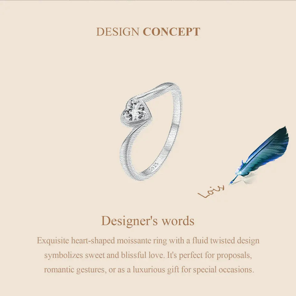 This heart-shaped moissanite ring radiates love and elegance with its beautifully cut center stone. The white gold plating enhances the overall sophistication, making it a perfect choice for meaningful moments. Arrives in a velvet jewelry bag, ready for gifting or treasuring as a personal keepsake.