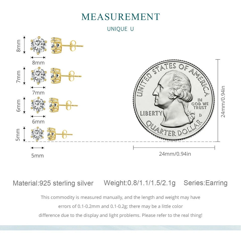 14K Gold Plated Sterling Silver Round CZ Stud Earrings – Hypoallergenic Cubic Zirconia for Women