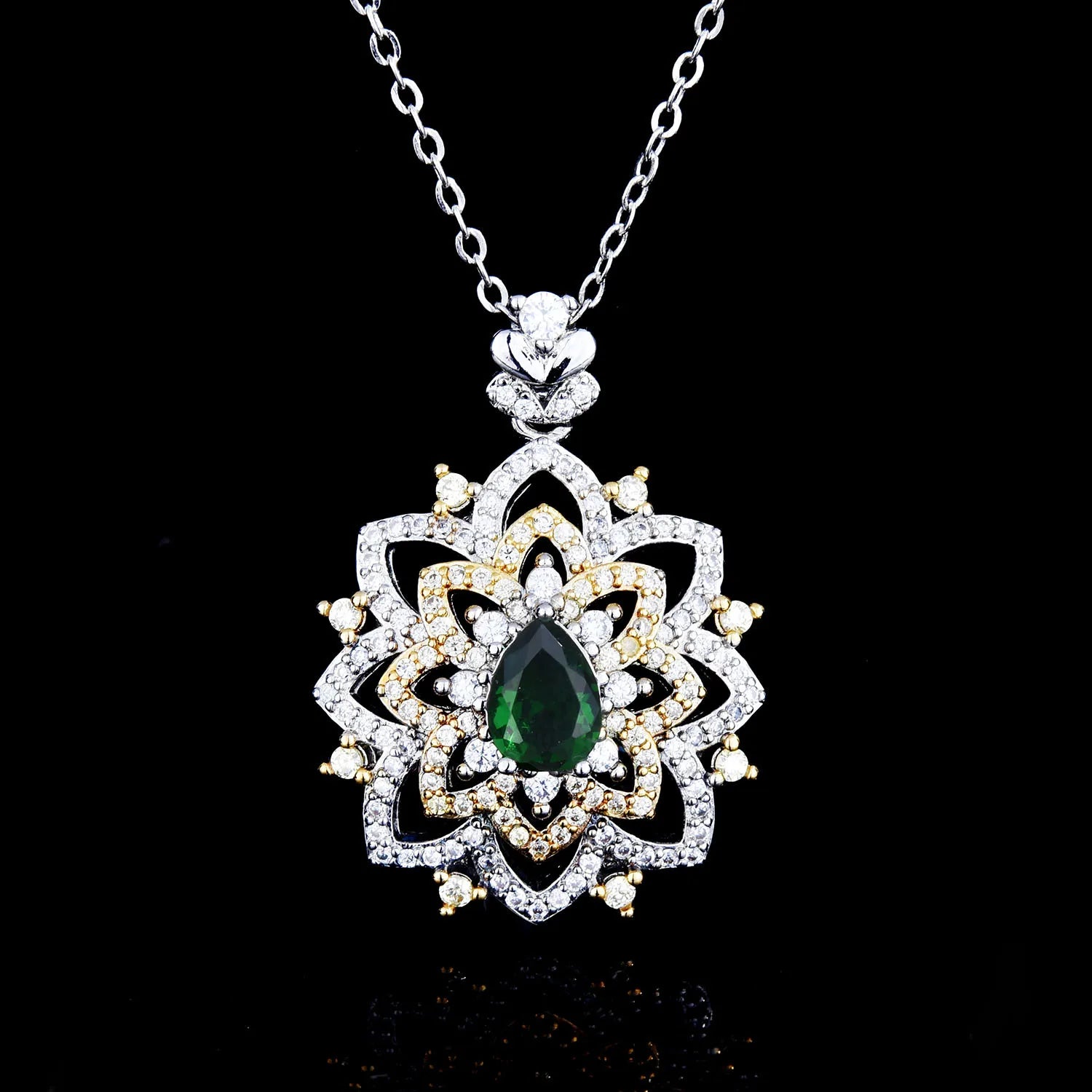 18K Multi Gold Emerald and Diamond Pendant Necklace for Women – Elegant Fine Jewelry with Natural Gemstone Accent