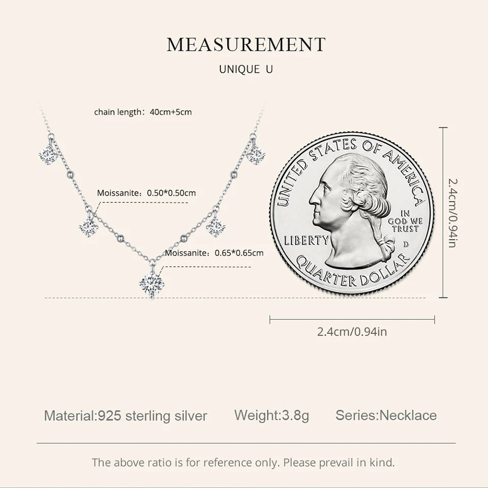 This five-stone moissanite necklace delivers maximum sparkle and sophistication with its cascading waterdrop design. With a total of 3.0 carats of brilliantly cut stones, it creates a bold yet refined statement. It arrives in a velvet jewelry bag, ready to present as a thoughtful gift or to elevate your personal collection.