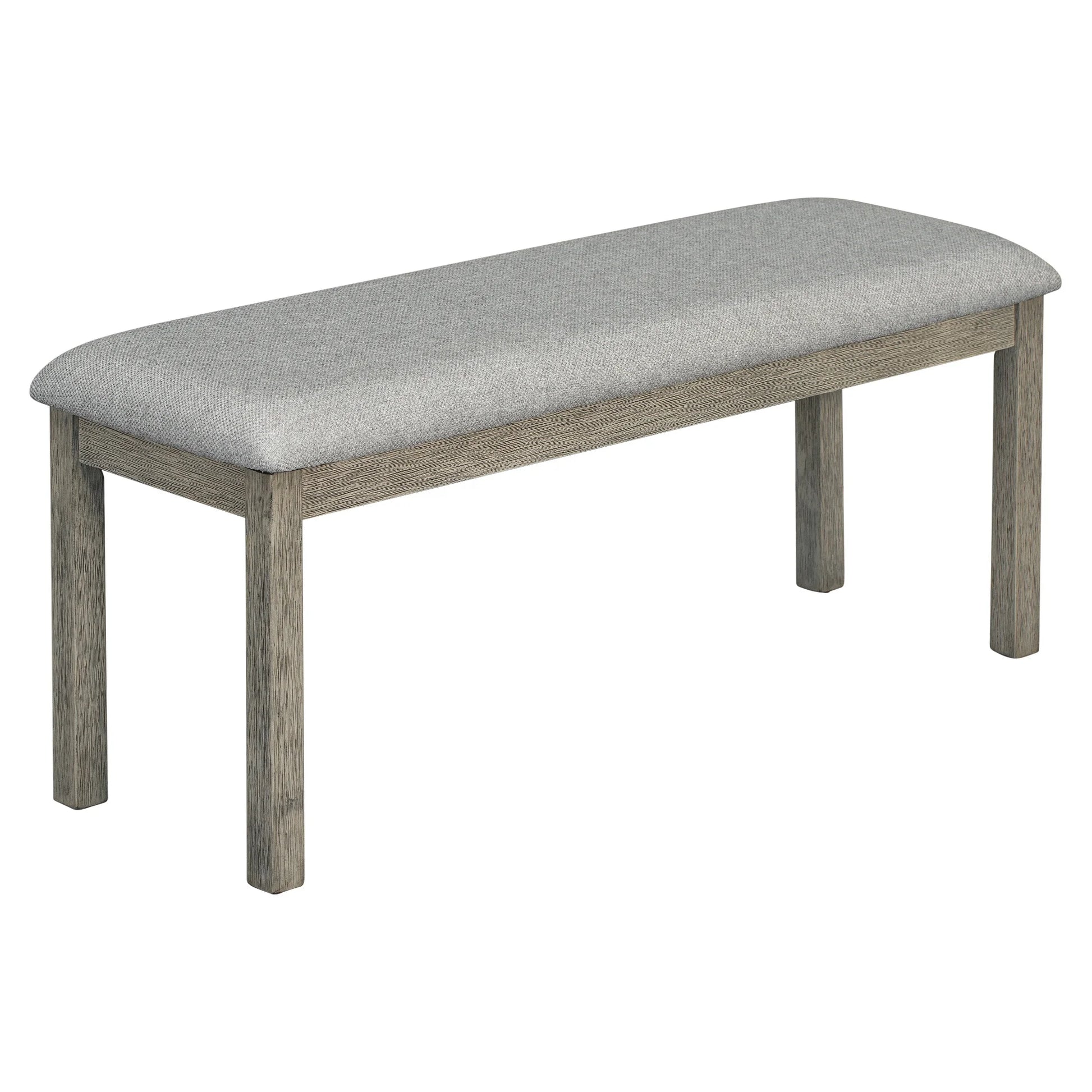 6-Piece Gray Oval Dining Table Set with Bench – Solid Wood Modern Furniture for Apartment or Farmhouse Use