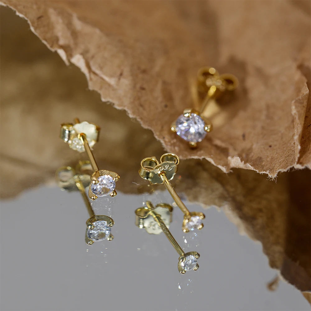 925 Sterling Silver 3-Piece Stud Earrings Set for Women – 18K Gold-Plated, Irregular Mini Design Fine Jewelry