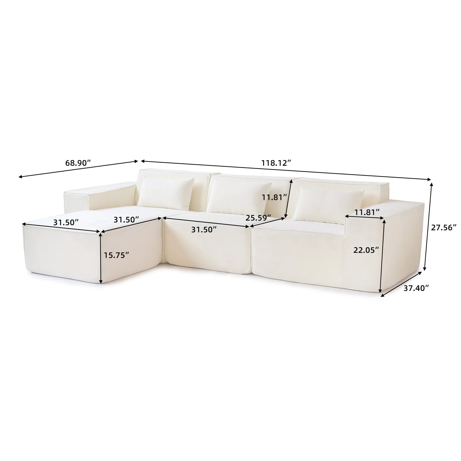 Bring comfort and minimalist style into your home with this modular sectional sofa. Its cloud velvet finish and compression packaging make it a stylish and practical choice for contemporary interiors.