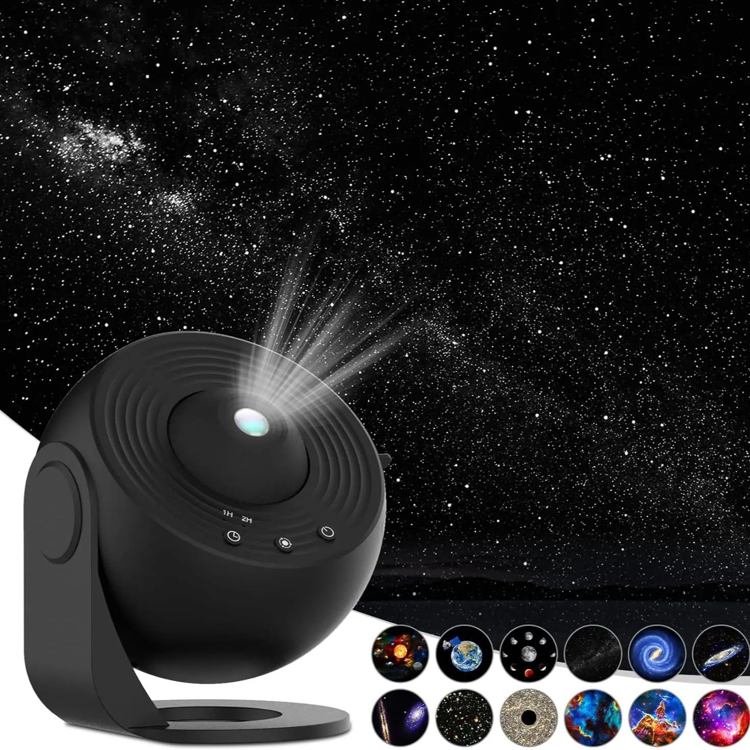 12-in-1 HD Galaxy Projector Night Light – 360° Rotating Star Planetarium Lamp for Kids and Romantic Spaces