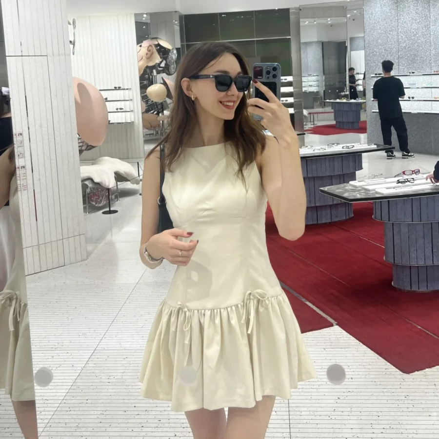 Sleeveless Black Mini Dress – Lace-Up Preppy Style A-Line School Dress