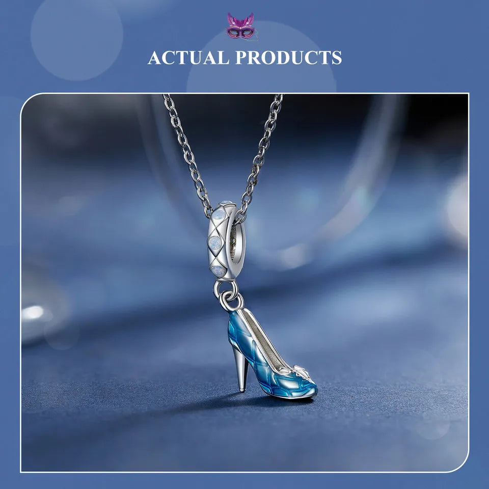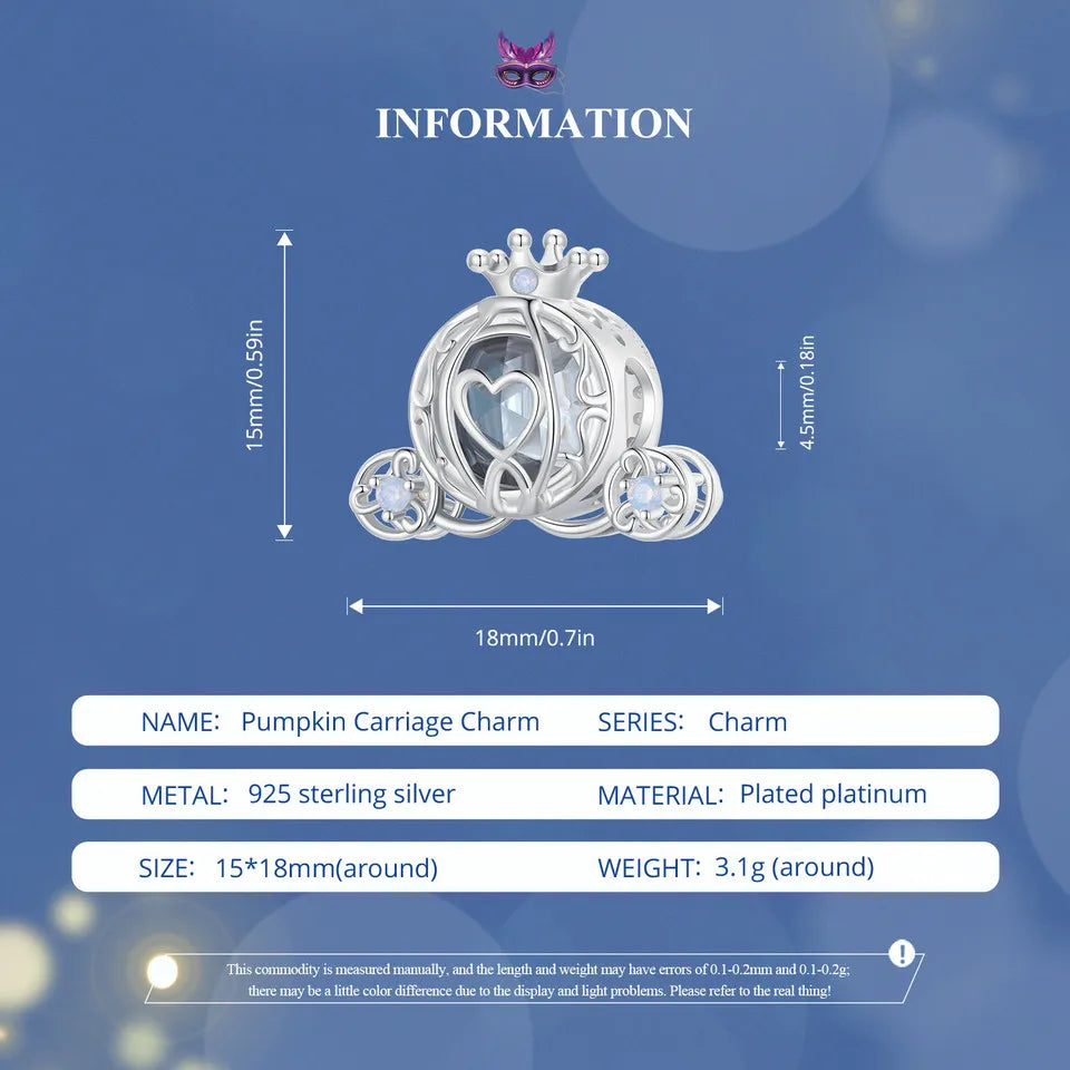 Sterling Silver Pumpkin Carriage & Dancing Shoes Charm Bead – Heart-Shaped Pendant for DIY Bracelets