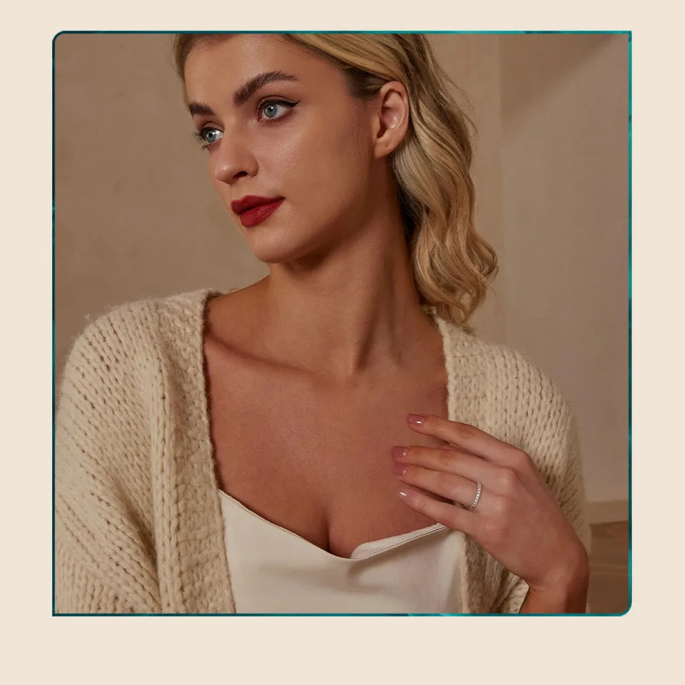 Textured Moissanite Half Eternity Band – 925 Sterling Silver Pave Ring with D Color VVS1 Stones for Women
