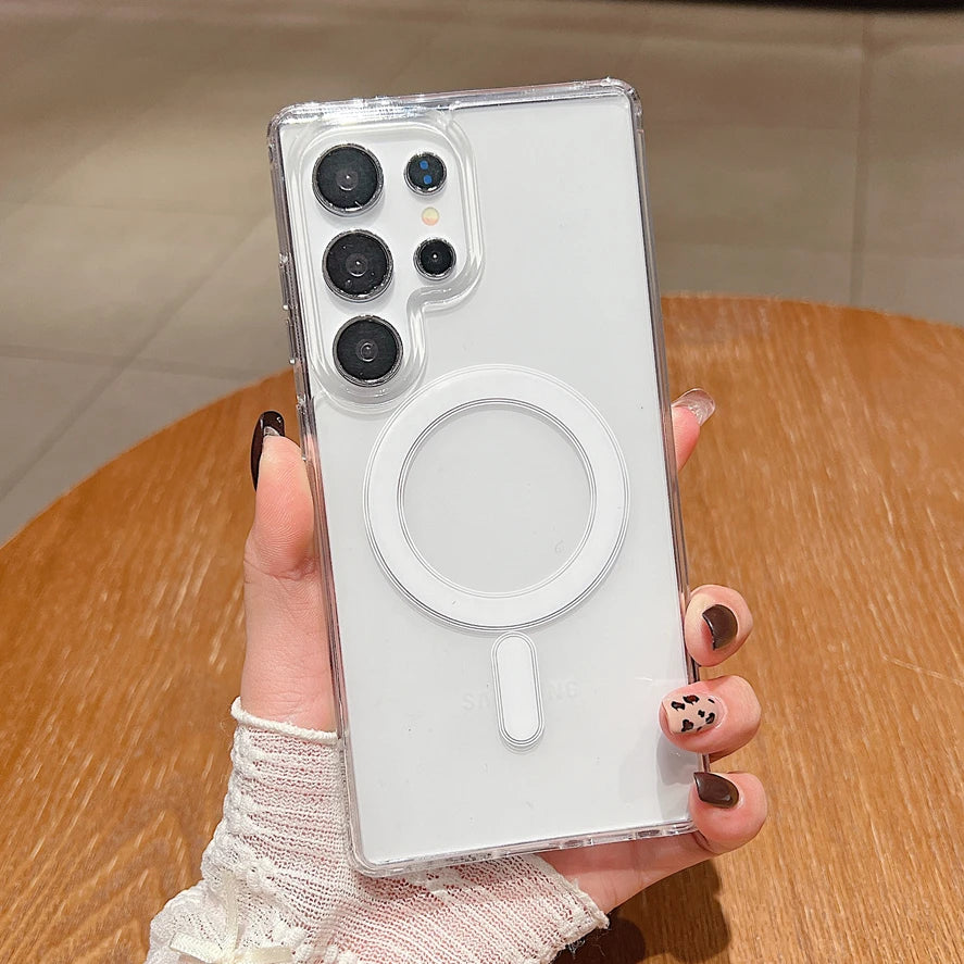 Transparent Magnetic Acrylic Case for Samsung Galaxy S25/S24/S23/S22/S21 FE & A Series – Ultra Thin Magsafe-Compatible Clear Cover