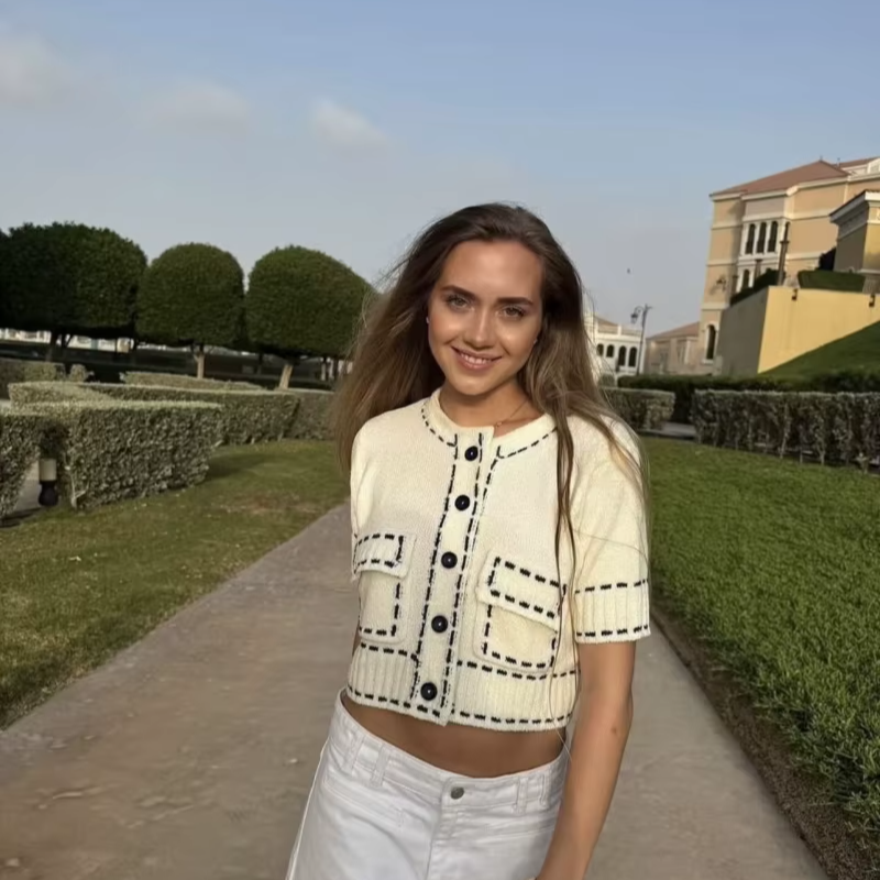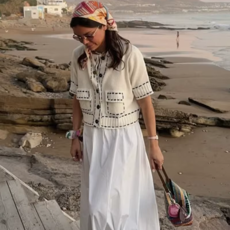 This handmade knitted cardigan coat combines craftsmanship with modern fashion. Its short length and structured fit make it perfect for layering over dresses or tops during spring and summer. The heavyweight knit ensures a premium feel, while the patchwork design adds visual interest.