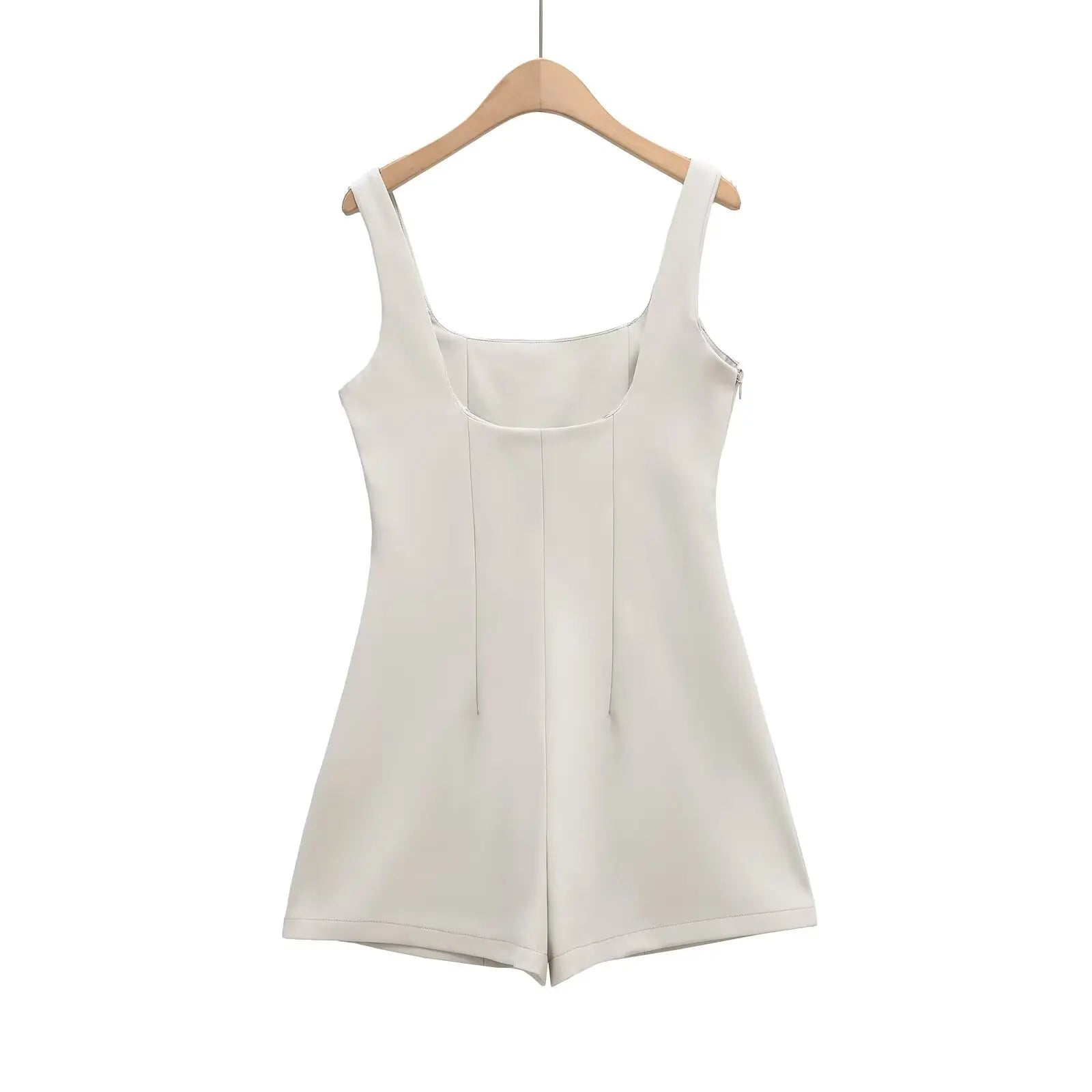 This A-line romper blends preppy fashion with casual comfort, making it perfect for warm summer days. The sleeveless square-neck style highlights the shoulders, while the short length and loose fit allow easy movement. Pair with sandals or sneakers for a chic seasonal look.