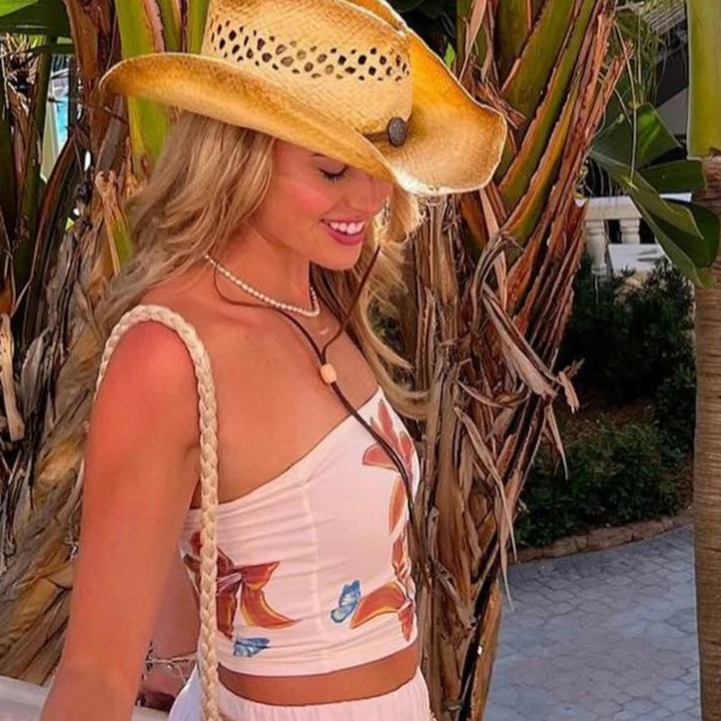 This floral bow print tube top is a statement piece for fans of fairycore and Y2K fashion. Its unique wrap chest design and cropped length make it perfect for pairing with high-waisted pants, skirts, or layered over mesh tops for an edgy, nostalgic look. Lightweight and versatile for sunny-day styling.