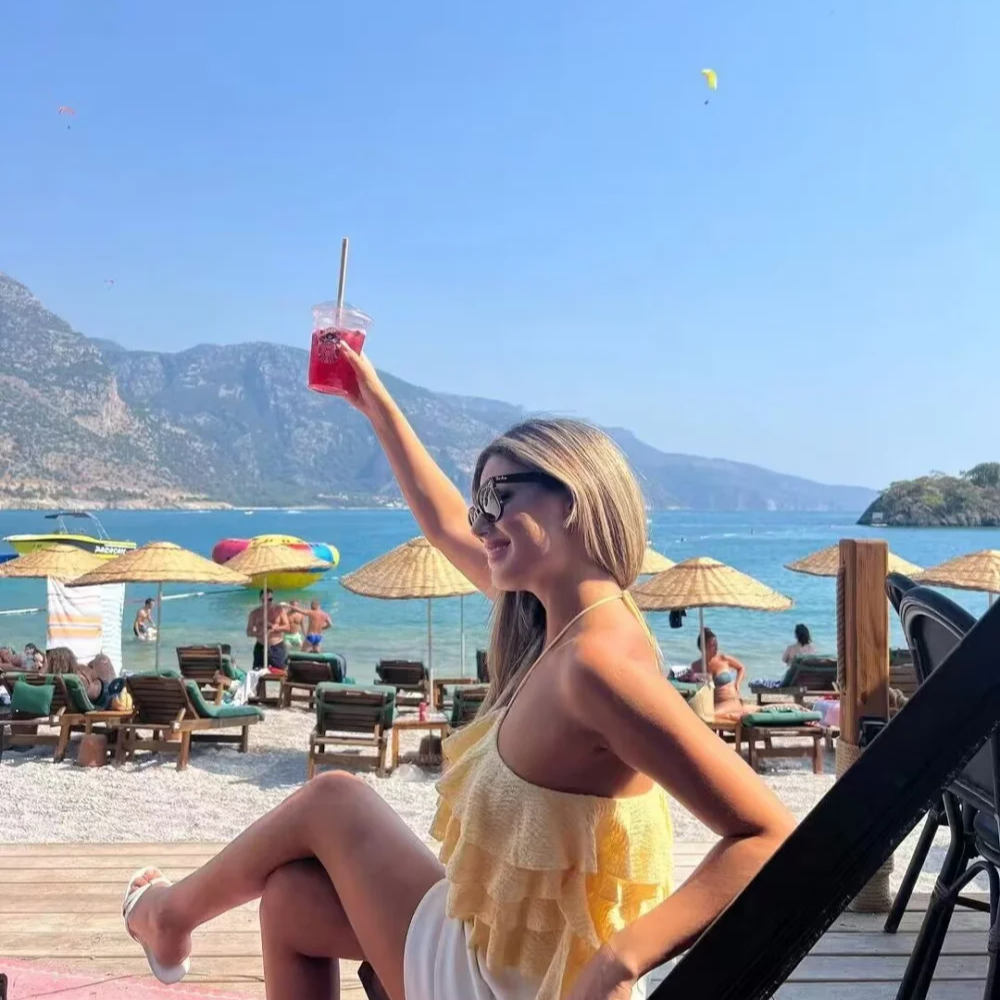 Style it with high-waisted shorts or a flowy skirt for an effortlessly cute summer ensemble. Adjustable halter tie allows for a customizable fit.