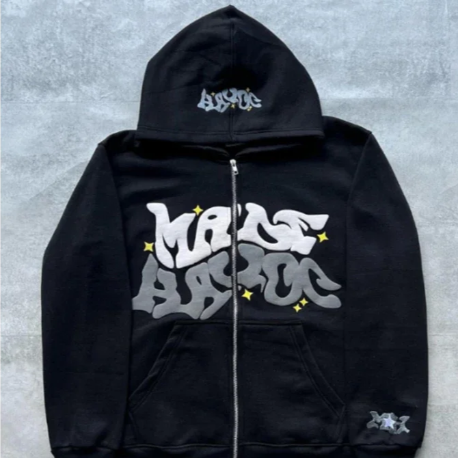Y2K Star & Letter Print Zip-Up Hoodie – Unisex American Retro Style Thick Hooded Jacket for Spring & Autumn Casual Streetwear